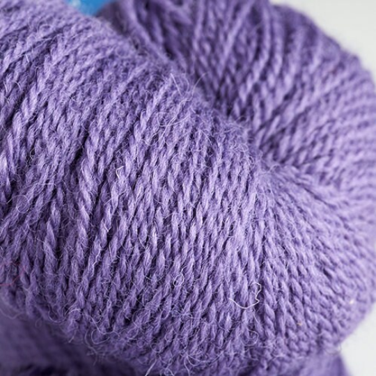 Cringle Moor 4ply yarn, a cool purple-blue shade of yarn from a single, slaughter-free flock of rare breed Border Leicester sheep in North Yorkshire.
